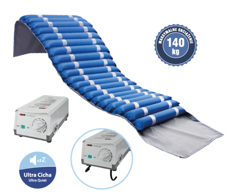 Materac przeciwodleżynowy AR-950 to wyrób medyczny przeznaczony dla osób długotrwale unieruchomionych, które spędzają większość czasu w pozycji leżącej. Stosuje się go profilaktycznie, aby zapobiegać powstawaniu odleżyn, a także wspomagająco w procesie leczenia już istniejących zmian skórnych. Materac układa się bezpośrednio na tradycyjnym materacu łóżka, przykrywając go prześcieradłem.