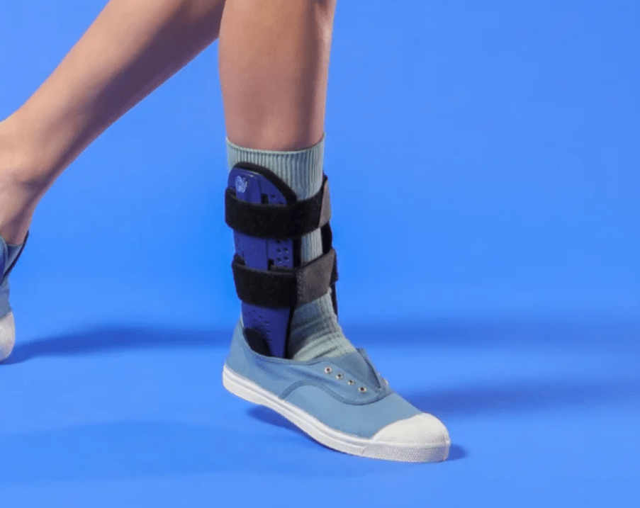 Stabilizator kostki typ łupki. Posiada dwa panele boczne zakładane po bocznych stronach kostki, spięte są dwoma pasami velcro.
