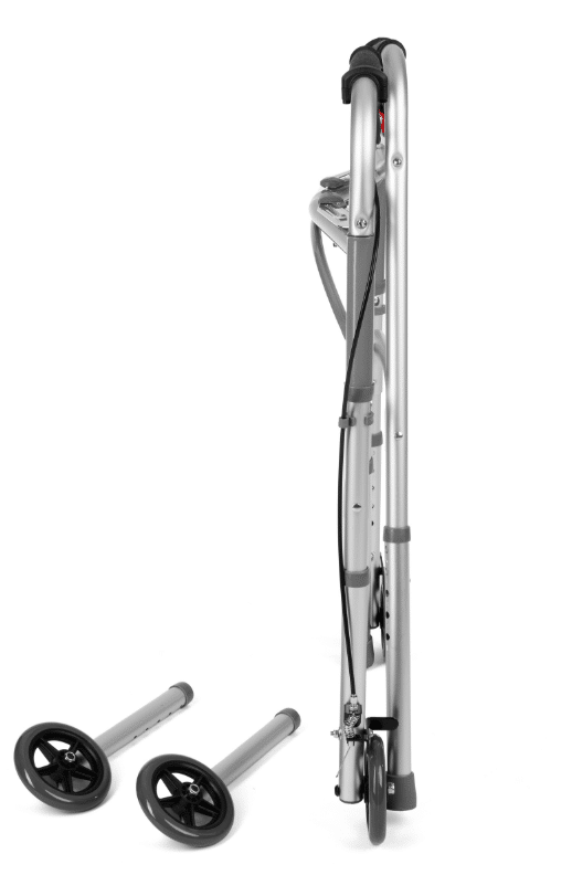 Balkonik jest aluminiowy, dzięki czemu operowanie nim jest proste i nie wymaga wysiłku. Wybrany model charakteryzuje możliwość wymienienia tylnych kół wedle potrzeb użytkownika. Przednie koła są stałe, natomiast tylne można zamienić na nóżki (w zestawie). Hamulce posiadają funkcję blokady postojowej, co chroni użytkownika przed niekontrolowanym przesuwaniem się balkonika.